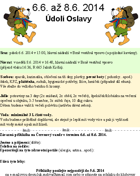 06.06.2014 15:00Sraz: pátek 6.6.2014 v 15:00, hlavní nádraží v Brně, vestibul vpravo